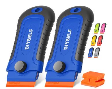 DIYSELF 2 Pcs Plastic Razor Blade Scraper with 10 Pcs Blades, Plastic Scraper Tool for Adhesive Remover, Scrapers for Cleaning Stickers, Decals, Glass, Windows, Car, No Scratches (Blue)