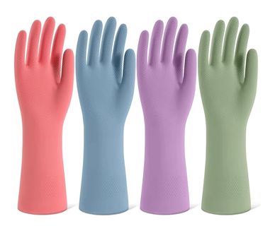 Rubber Cleaning Gloves for Dishwashing, 4 Pairs Reusable Kitchen Gloves for Washing Dishes and Household Cleaning, Colorful Dish Gloves with Flocked Lining and Non-Slip Grip, Pefect for Woman Men - L