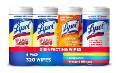 Lysol Disinfecting Wipes Bundle, Home Apartment Dorm Room Essentials and Cleaning Supplies, All Purpose Cleaner, Multi-surface Cleaning Wipes, Multi-Scent Sanitizing Wipes Bundle, 80 Count (4pk)