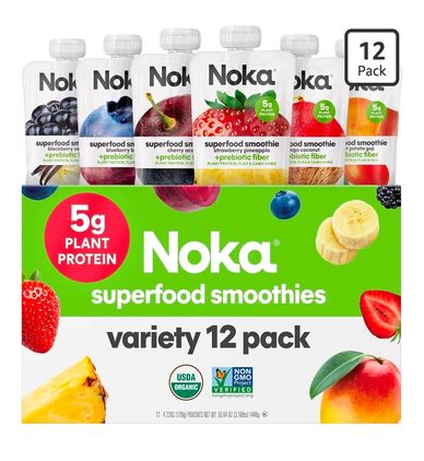 Noka Superfood Fruit Smoothie Pouches Variety Pack, Healthy Snacks with Flax Seed, Plant Protein and Prebiotic Fiber, Vegan and Gluten Free Snacks, Made in USA, Organic Squeeze Pouch, 4.22 oz, 12 Count