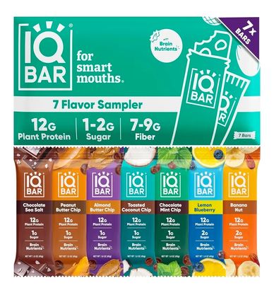 IQBAR Clean Plant Protein Bars - Bar Sampler - 7 Count - Keto, Vegan, High Fiber, Gluten and Dairy Free, Low Sugar Snack - Brain and Body Nutrients for Focus, Energy, Meal Replacement